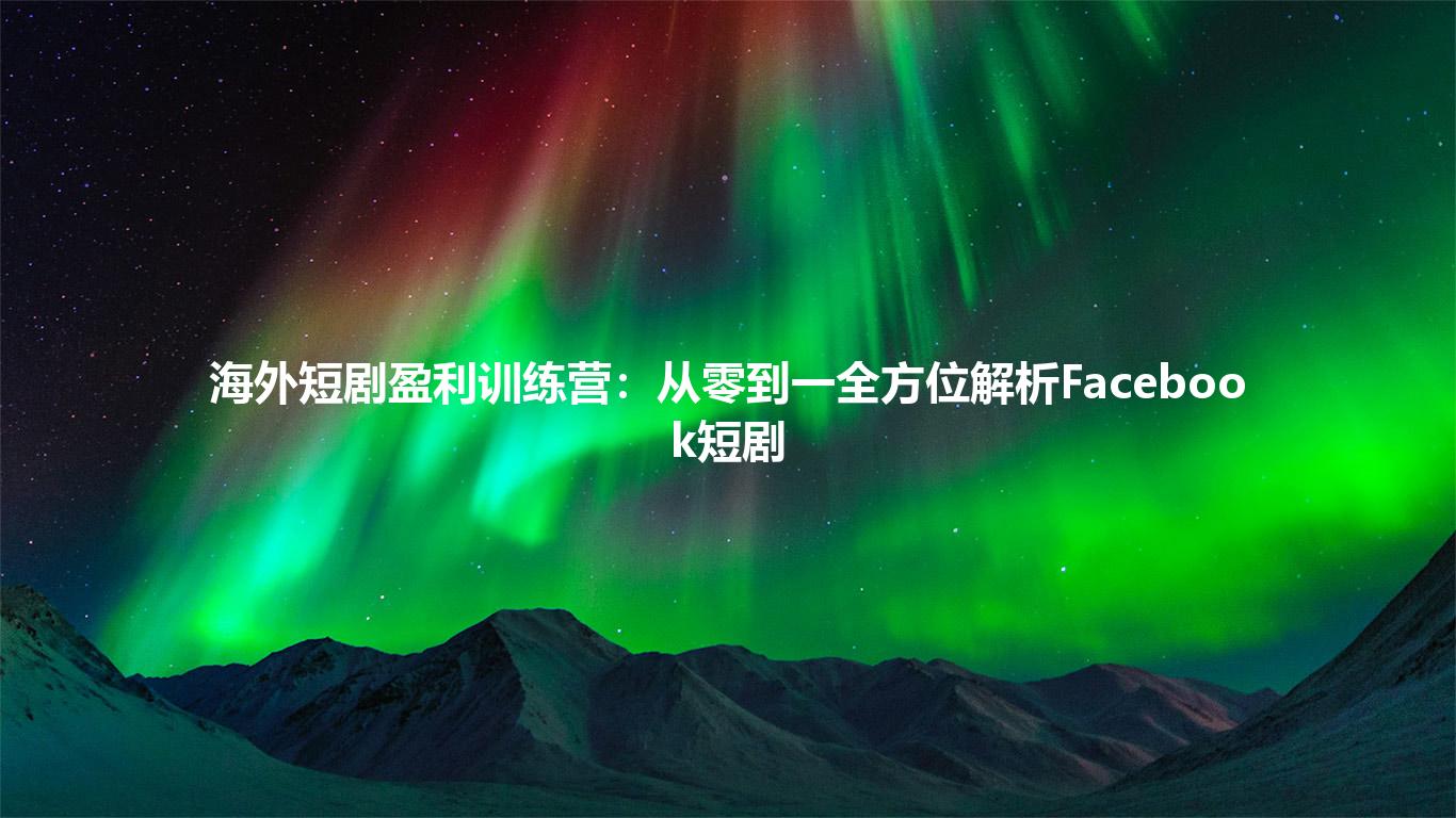 海外短剧盈利训练营:从零到一全方位解析Facebook短剧